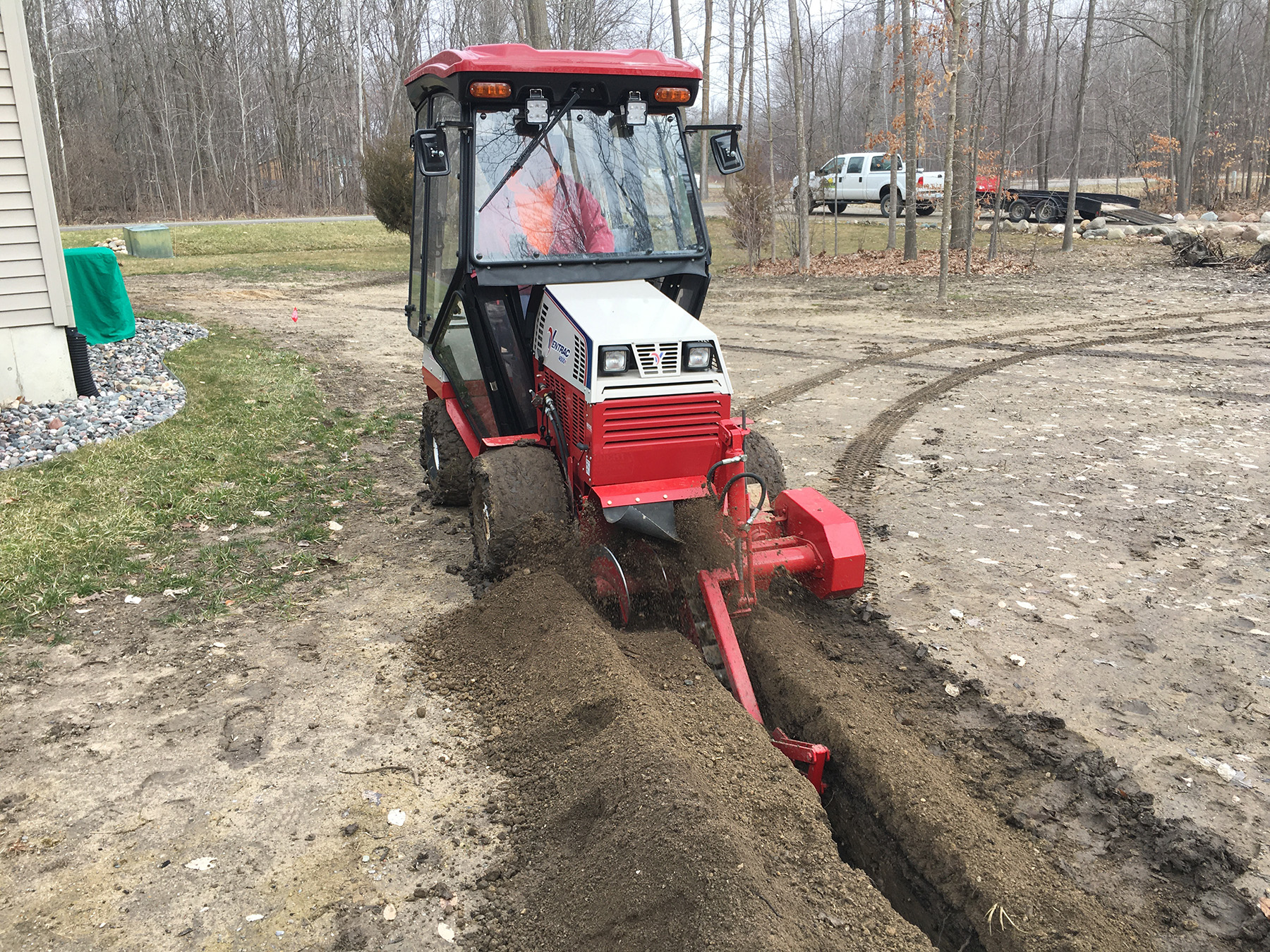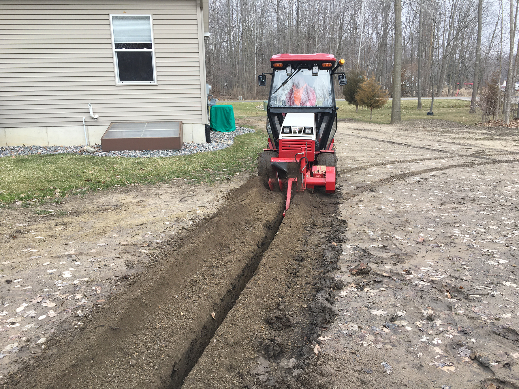 Our trenching service is a great cost effective way for homeowners to install their own underground utilities without the back breaking work of hand digging or the hassle of renting a walk behind unit, plus we will be able to dig the trench with minimal damage to your lawn. We can trench down to 28 inches and 5½ inches wide for underground utilities, irrigation & drainage systems, or any thing else you need to run underground. For projects needing to go deeper or wider we can utilize a mini excavator.